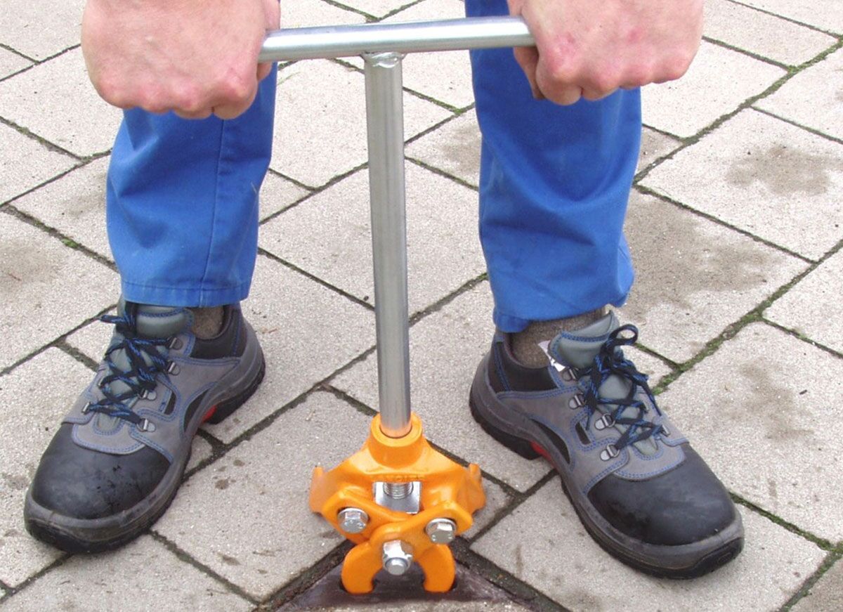 Das Aufheben der Schachtdeckel ist durch die Stützbacken möglich